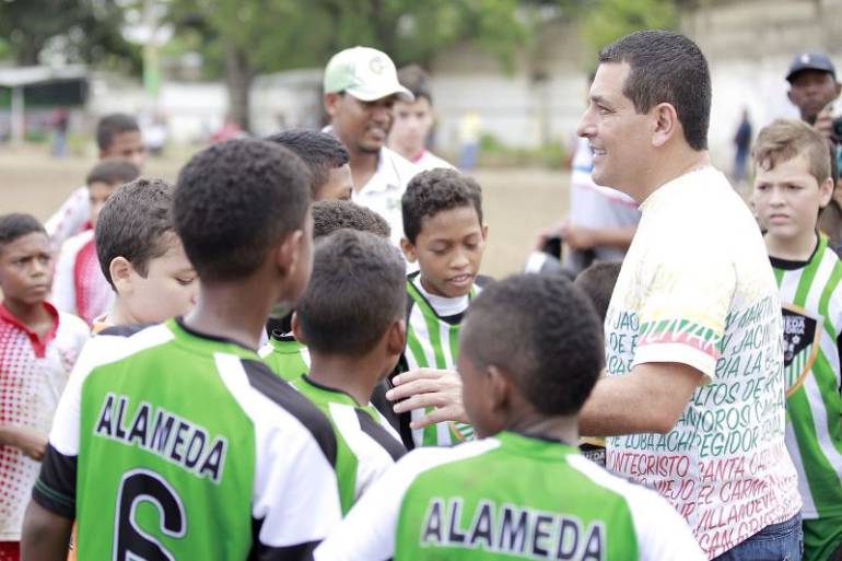 Cientos de expresiones de agradecimiento tuvieron los niños que jugaban hoy en la mañana en las canchas de Alameda La Victoria. No era para menos, el gobernador de Bolívar, Dumek Turbay, les estaba anunciando que esos potreros, mal llamados canchas, en donde varias generaciones han pasado dejando su talento futbolístico marcado con huellas y sudor, se transformarán en canchas del mejor nivel.