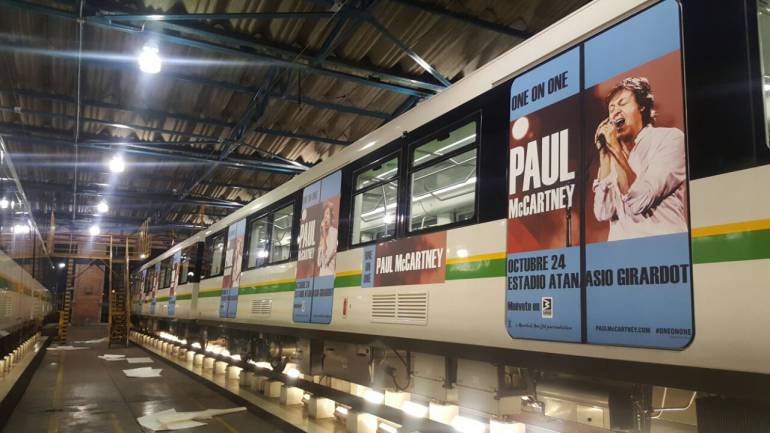 El Metro de Medellín se une a la fiebre que hay en la ciudad, con motivo de la próxima visita que hará el exintegrante de los Beatles, Paul McCartney, el próximo 24 de octubre, y para ello vistió totalmente uno de sus trenes con imagen del artista británico.