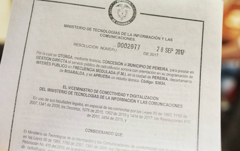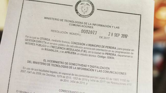 La concesión de la emisora fue otorgada directamente a la alcaldía de Pereira, recordemos que estaba a cargo del instituto de cultura que fue liquidado.