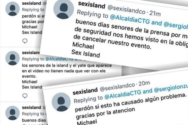 El alcalde de Cartagena, Sergio Londoño Zurek, confirmó que recibió en su cuenta de Twitter una mención directa desde una cuenta cuya autenticidad se está verificando, en la que dan a conocer que el evento de Sexisland se cancelará.