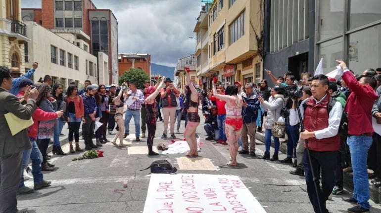 Frente al palacio de la gobernación de Nariño, con actos simbólicos, reclamaron celeridad y transparencia en las investigaciones sobre los hechos que acabaron con la vida de seis campesinos cultivadores de coca, entre ellos dos miembros de la etnia Awa.