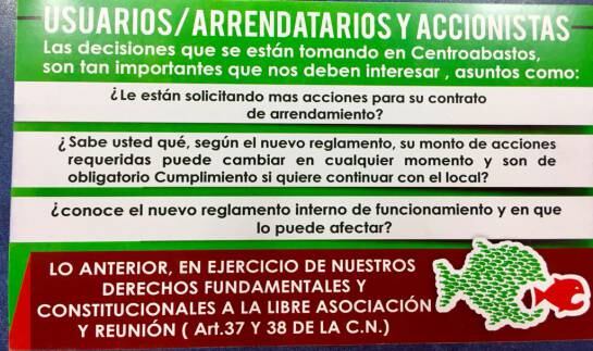 En un mensaje dirigido a usuarios, arrendatarios y accionistas se advierte que se solicitan más acciones para el contrato de arrendamiento. Según el nuevo reglamento, el monto de acciones requeridas puede cambiar en cualquier momento y es una obligación tenerlas si se quiere continuar con el local.