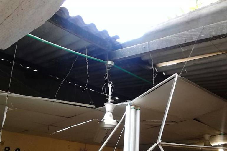 Se vino abajo el parte del cielo raso y del techo de un salón de clases de la Institución Educativa Técnica Liceo de Bolívar Sede 7 de Agosto en Cartagena, por fortuna los estudiantes de preescolar ya habían salido de su horario estudiantil, pero en el hecho resultó con heridas leve una de las profesoras.