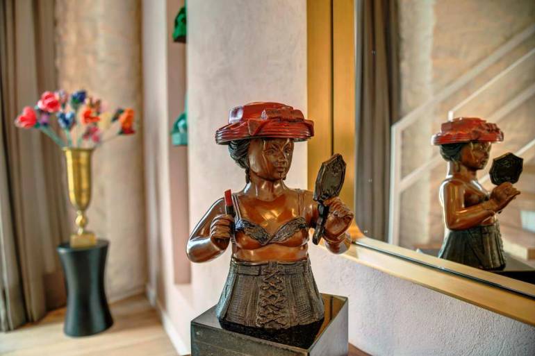 La genialidad del maestro colombiano está presente en cada parte de la habitación con 4 esculturas coloridas de maríamulata y las Ritas, y 3 pinturas, además de libros y fotografías. La Suite Grau se engrandece con la figura emblemática del Maestro, Maríamulata, que sobresale en una de las fachadas de la terraza, vigilante del mar Caribe.