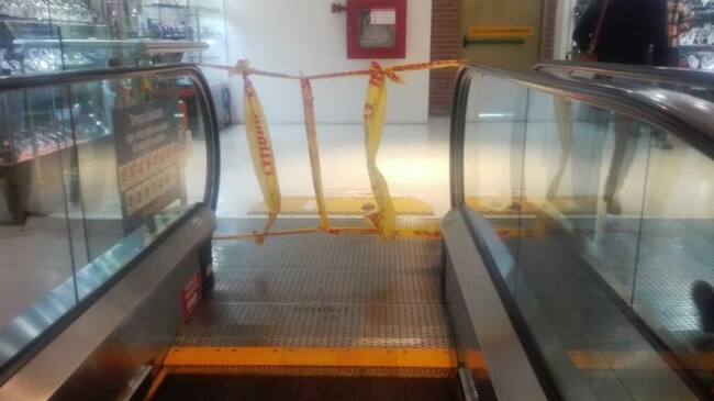 El fin de semana en el Centro Comercial Fundadores, dos menores de edad se accidentaron en las escaleras eléctricas.