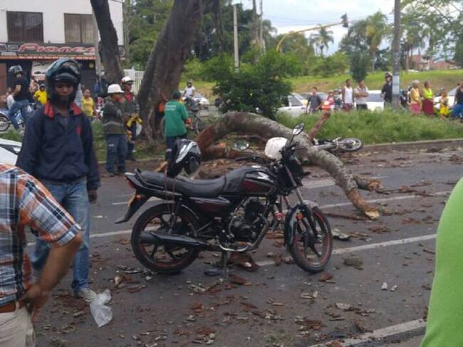 Según el sargento Ernesto Filigrana, comandante del incidente del Cuerpo de Bomberos Voluntario de Cali, tanto los vehículos como las motos se encontraban haciendo el pare en un semáforo cuando les cayó la rama del árbol.
