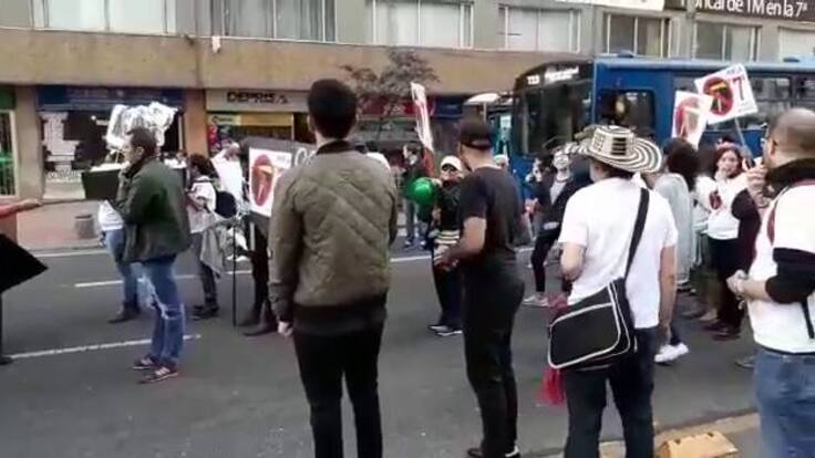 Un grupo de ciudadanos marchó por la Carrera Séptima, las personas rechazan que se construya la troncal de Transmilenio por esta vía.