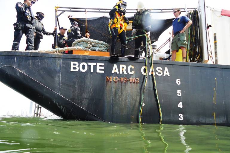 Del mismo modo, se desarrolló una operación de despliegue de capacidades de los buzos de la Armada Nacional, a bordo del bongo ARC “Casa”, del Departamento de Buceo y Salvamento; así mismo, se realizó un campo de anclas en el sector de 4 calles, con dos estaciones de buceo con aire suministrado desde Superficie, donde se realizaron trabajos de corte y soldadura submarina, dragado, ejercicios de rescate, descompresiones en superficie por medio de cámaras hiperbáricas, evaluación de los supervisores de buceo y test neurológicos.