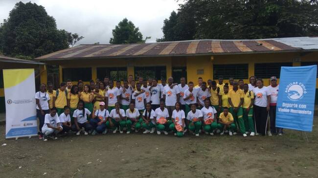Este trabajo llevó a las integrantes del Club de Baloncesto Las Águilas a compartir una jornada con más de 200 estudiantes de la Institución Educativa Manuel E. Rivas Lobón en el corregimiento de Bebedó, a donde solo se puede arribar por vía fluvial. Ese día, el río San Juan había aumentado el nivel de sus aguas.