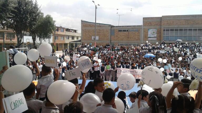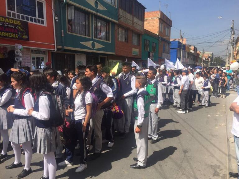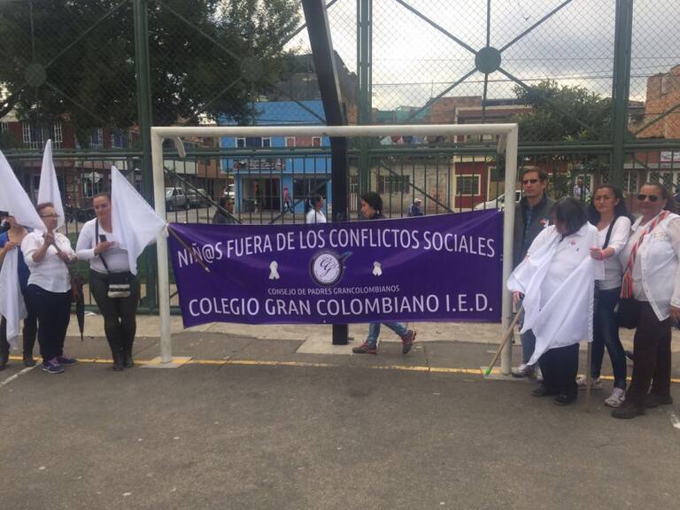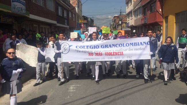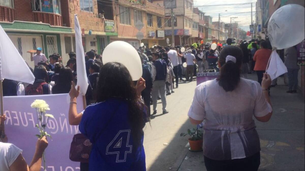La movilización inició en la sede A del colegio Gran Colombiano y terminó en la sede D donde recibía clases el menor asesinado.