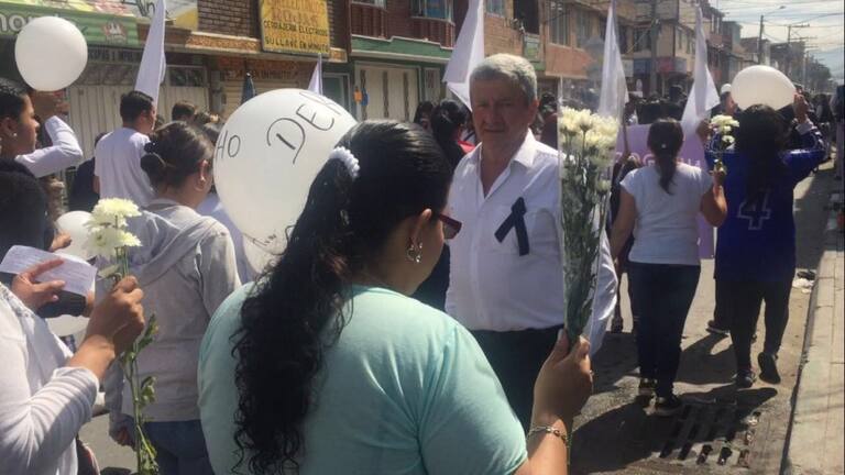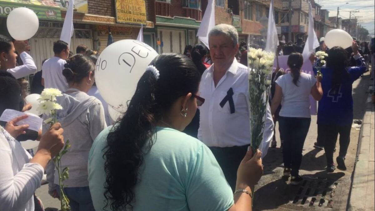 Vecinos de la zona también se unieron a la marcha con flores y banderas blancas, además de carteles donde se rechaza la violencia contra los menores de edad.