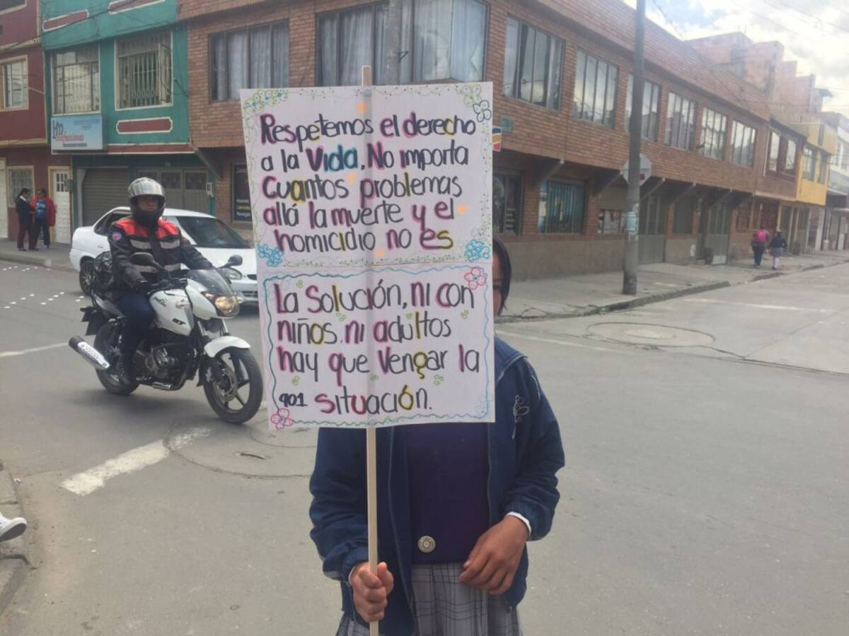 "No queremos que incluyan nuestros niños en estos actos de violencia, estamos muy golpeados por este hecho y pedimos que se haga justicia", manifestaron algunos asistentes a la marcha.