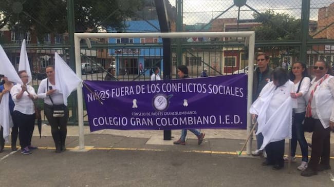 La movilización inició en la sede A del colegio Gran Colombiano y terminó en la sede D donde recibía clases el menor asesinado.