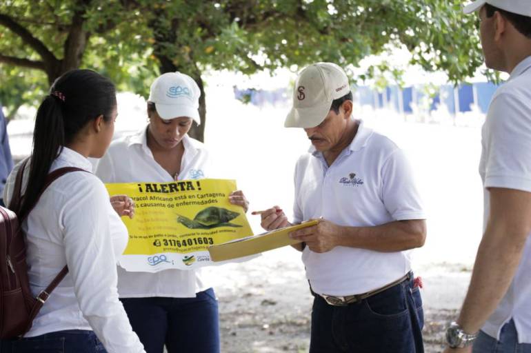 Una jornada para capacitar a los residentes, turistas y vendedores en Castillogrande sobre las medidas preventivas que deben tener si detectan un caracol africano (Achatina Fulica) en su comunidad, realizó el Epa Cartagena.