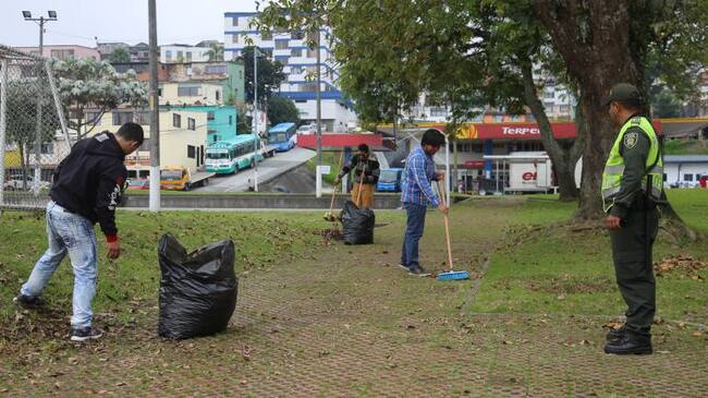 Infractores del Código de Policía en Manizales realizaron trabajo comunitario / Policía Metropolitana de Manizales y Villamaría