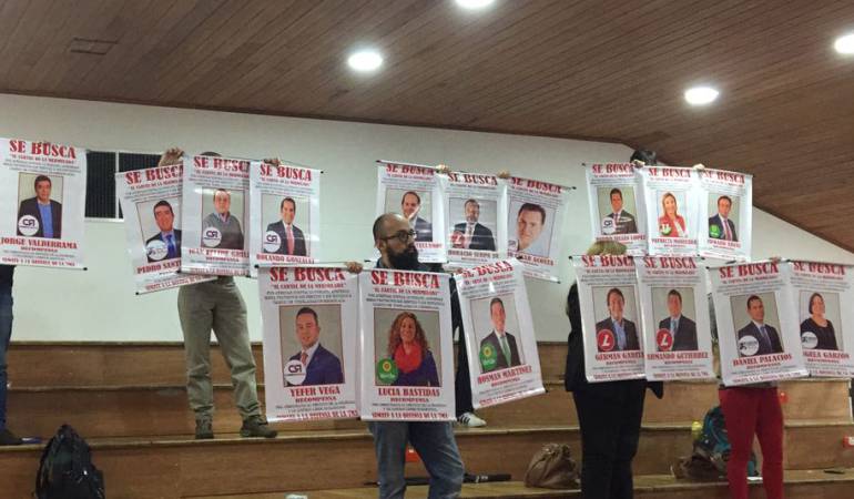 Se trataba de las fotos de los concejales que votaron “sí” al cupo de endeudamiento para financiar obras como la construcción de Transmilenio en la carrera Séptima.