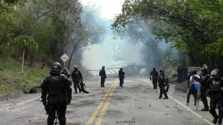 Campesinos se enfrentan con el Esmad en la Panamericana en Cauca