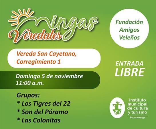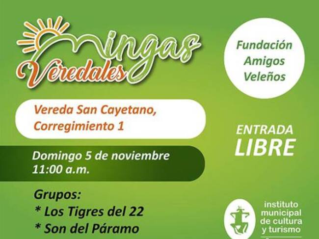 La fundación Amigos Veleños, en apoyo con el Instituto Municipal de Cultura y Turismo, llevará este domingo 5 de noviembre a la vereda San Cayetano la Minga Veredal, una actividad cultural de integración entre los habitantes y campesinos.