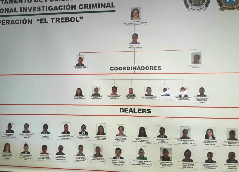 La banda estaría conformada por más de 30 personas, que se desempeñaban como vendedores, empacadores, dosificadores; encargados del cobro del dinero producto de la venta, entre otras funciones para mantener el control del grupo delincuencial.
