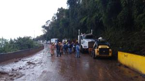 Tras las lluvias de este miércoles, se presentaron varios derrumbes que interrumpieron el paso en sectores como el kilómetro 32, una zona conocida como la Nevera.