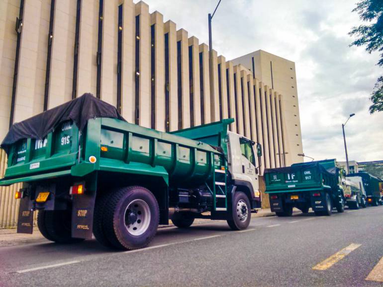Este miércoles entró en funcionamiento el nuevo parque automotor de la Administración Municipal de Medellín, asignado a la Secretaría de Infraestructura Física, conformado por 13 vehículos de trabajo pesado. Son ocho volquetas, cuatro jaulas y un carro tanque. Estos cuentan con condiciones tecnológicas especiales de manera que durante su funcionamiento regulan la emisión de gases y por lo tanto generan menos contaminación.