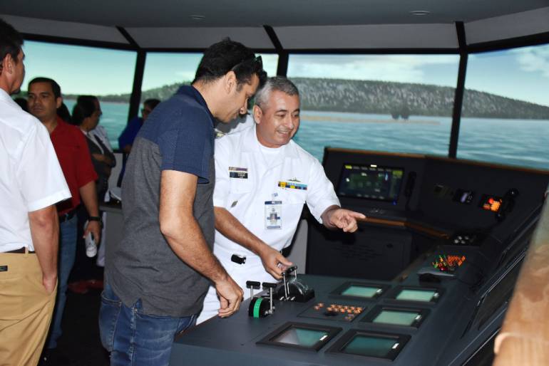 Un ejercicio a bordo del simulador de Puente Full Mission dio cuenta de las capacidades que tiene la institución para aportar a la capacitación del personal vinculado en la navegación marítima y fluvial, con escenarios que son fieles a la realidad en situaciones que ayudan a ejercitar la toma de decisiones.