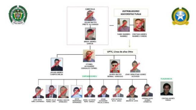 Los18 jóvenes capturados cuyas edades oscilan entre los 18 y 30 años, configuraban un andamiaje bastante elaborado en la distribución y comercialización de estupefacientes en una universidad pública de la capital Boyacense, cuya base de funcionamiento eran estudiantes de los primeros semestres de la educación superior.