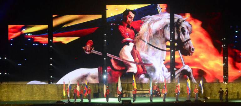 Luego se encendió el cielo samario con un gran espectáculo de juegos pirotécnicos que a su vez abrió el telón para el ingreso de más de 400 artistas, entre bailarines e interpretes musicales, que hicieron una alegoría de las más destacadas acciones libertadoras de Simón Bolívar y el gran nobel de literatura colombiana Gabriel García Márquez.