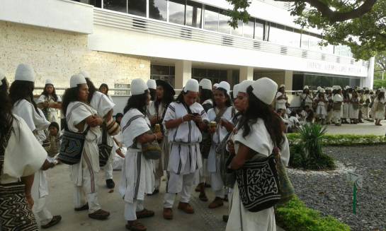 Los arhuacos adelantan protestas también en la salida a los corregimientos del norte de Valledupar para reclamar al Gobierno nacional el cumplimiento de los acuerdos firmados sobre minería, saneamiento y territorio.
