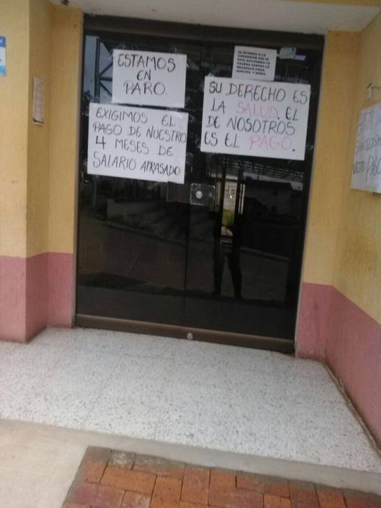Alrededor de 20 funcionarios entre médicos, enfermeras y administrativos, están en paro porque no les pagan sus salarios desde hace más de 4 meses.