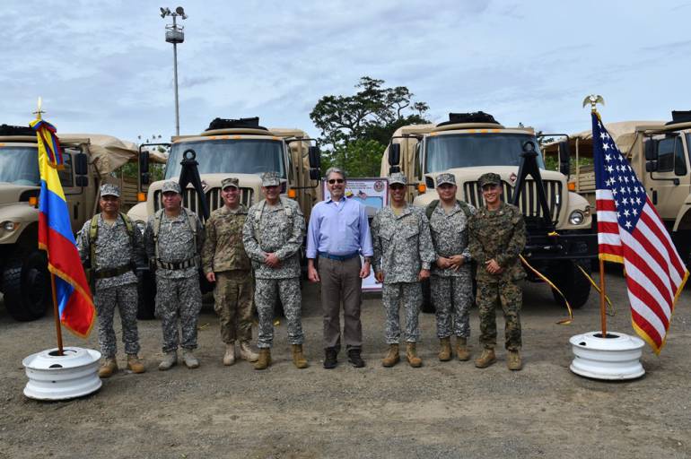 Durante una ceremonia presidida por el Contralmirante Gabriel Alfonso Pérez Garcés, Comandante de la Fuerza Naval del Caribe y el Brigadier General de Infantería de Marina Oscar Eduardo Hernández, Comandante de Infantería de Marina, Kevin Whitaker, Embajador de los Estados Unidos, entregó ocho camiones tácticos, de alta movilidad y multipropósito que fueron destinados al Batallón de Movilidad de Infantería de Marina No.1 ubicado en Malagana, Bolívar.