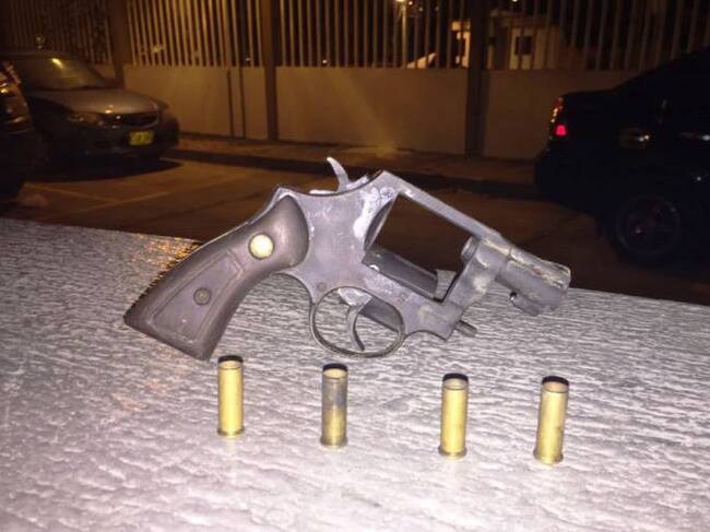 En el corregimiento de Pasacaballos, barrio Membrilla calle principal, dentro de un parqueadero, gracias a la oportuna reacción de las patrullas del cuadrante se logra la captura en flagrancia de un presunto delincuente conocido con el alias de “Deimer” de 31 años, a quien se le hallo en su poder un arma de fuego tipo revolver marca Tauro calibre 38 mm y cuatro cartuchos para el mismo