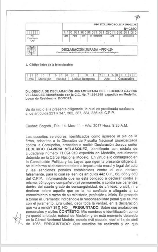 De esta forma, según Gaviria, el ex congresista fijo una tarifa de $500 millones de pesos que se pagarían a través de subcontratos, pero le quedaron debiendo un porcentaje.