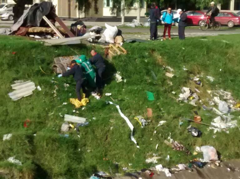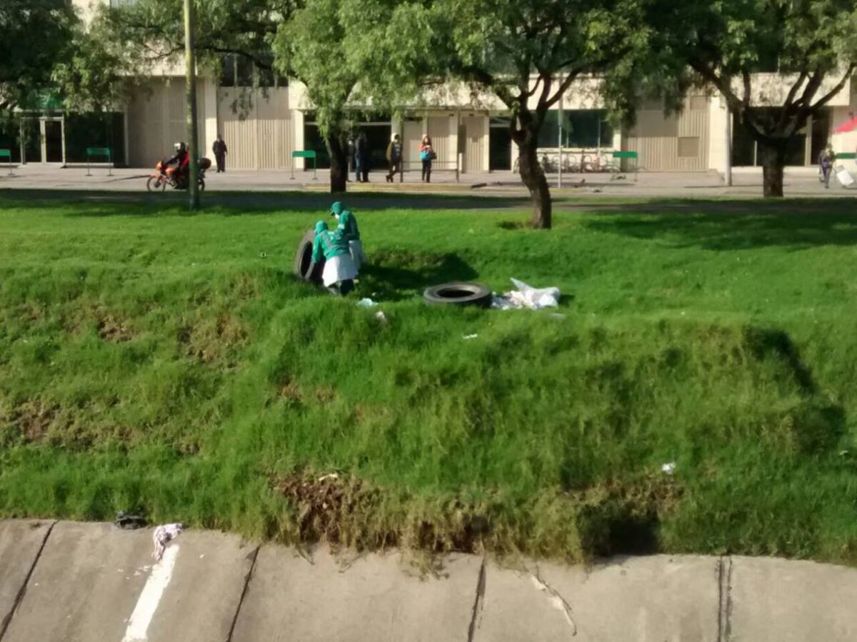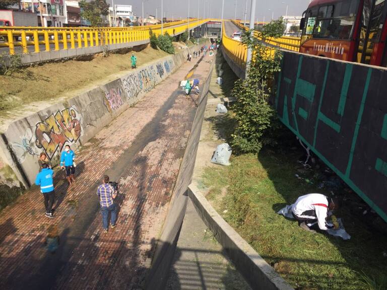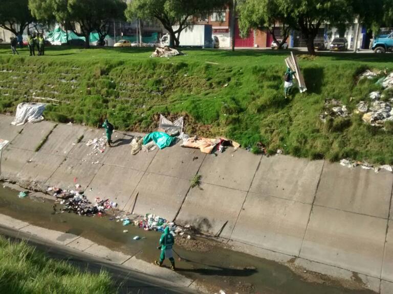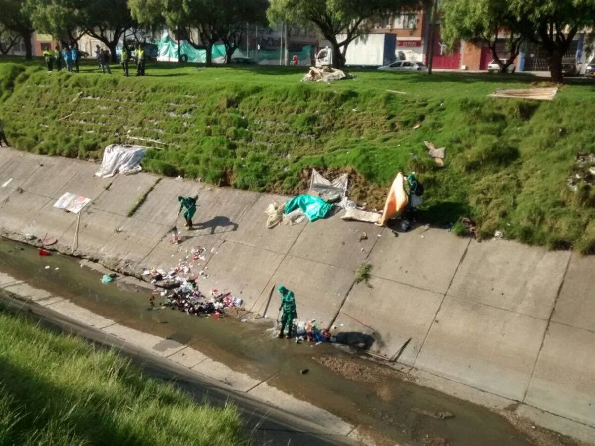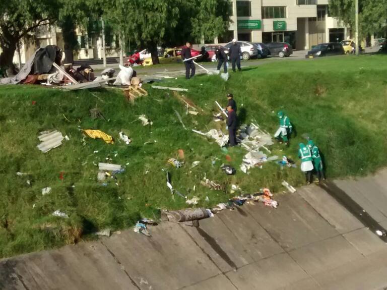 Cambuches que ya parecían viviendas en caño de Bogotá