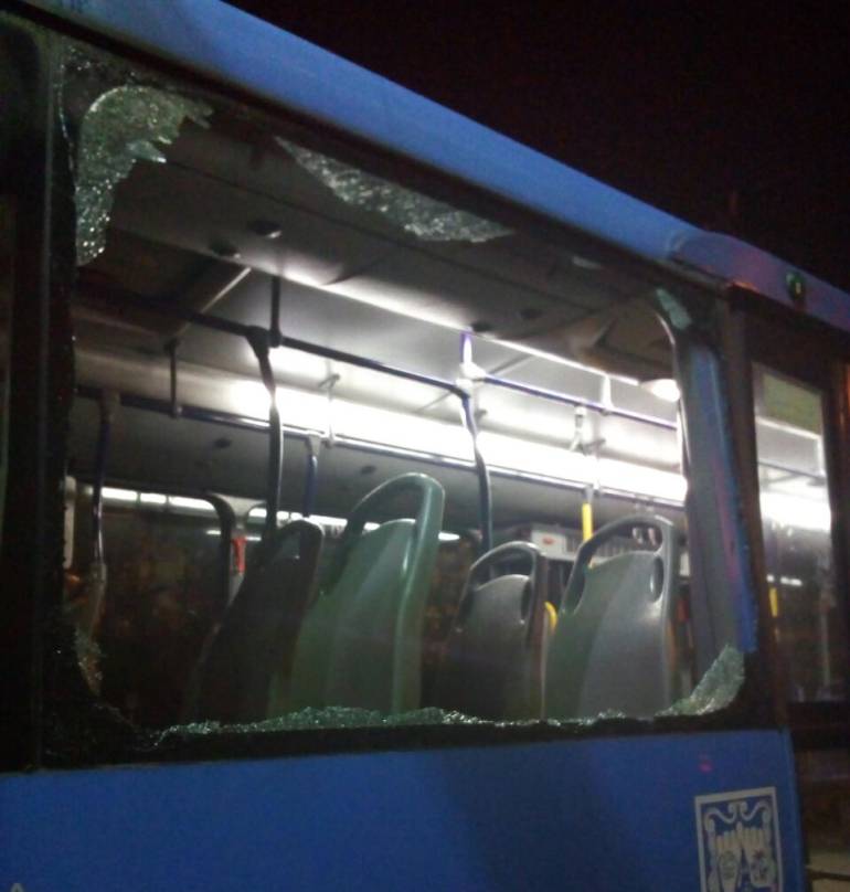 Los actos vandálicos se presentaron entre las 7:30 y 10:00 p.m. en la Avenida Ciudad de Cali, entre las estaciones Nuevo Latir y Andrés Sanín contra la ruta P12A que circula por ese trayecto.