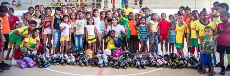 En el evento, realizado en el mismo barrio, el reconocido patinador colombiano Otto Bolaños Guzmán, miembro del Circo del Sol, en Las Vegas (Estados Unidos), donó 22 patines a los menores.
