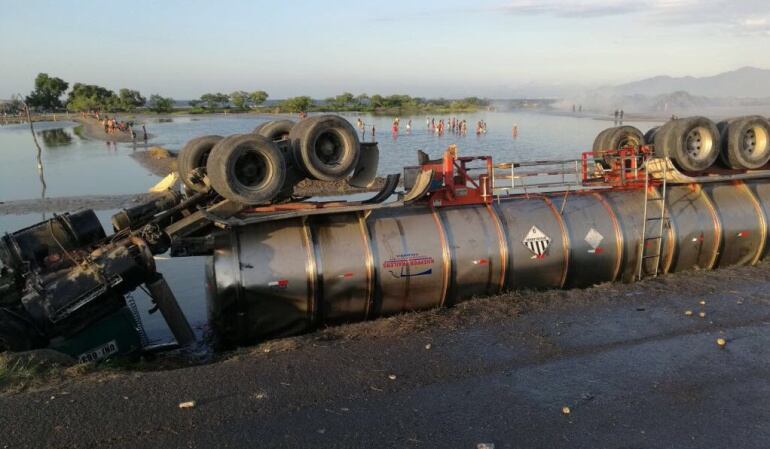 El volcamiento se produjo en el sector de Tasajera, jurisdicción del municipio de Puebloviejo en el Magdalena, cuando el conductor perdió el control del vehículo tipo cisterna y jóvenes inescrupulosos saquearon la carga de aceite, provocando un trancón por varias horas.