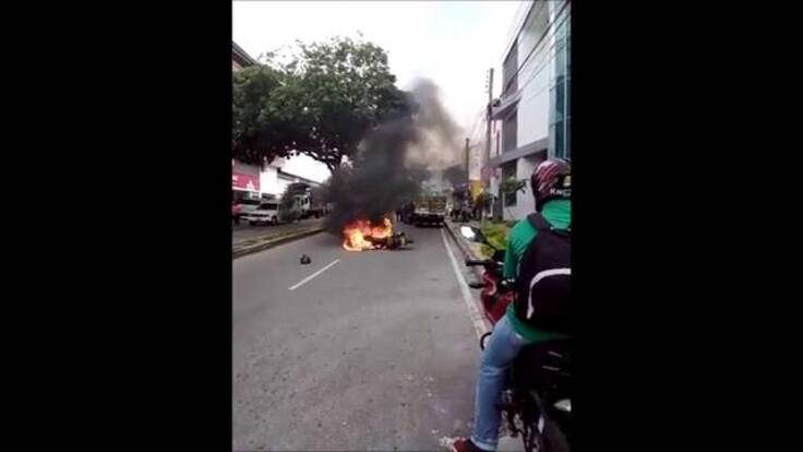 En un video, se ve el vehículo ardiendo en llamas, en una calle de Bucaramanga.