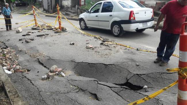 Un hundimiento vial en más de cinco metros de calzada en la calle 15 entre avenidas 25 a la 27 del barrio Policarpa tiene desesperados a los habitantes, comerciantes y conductores de la zona.