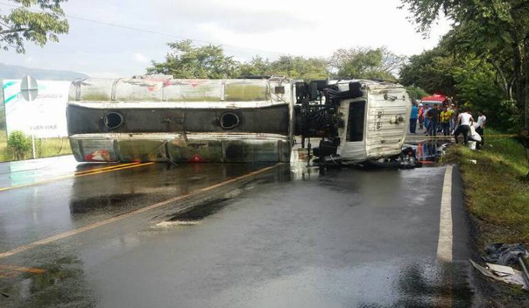 En el rodante se transportaba combustible tipo acpm que se derramó sobre la vía, personal de bomberos de Ibagué se encuentran en la zona atendiendo la emergencia para habilitar el paso vehicular, se solicita paciencia y precaución a los conductores que se desplazan hacia el norte del Tolima.