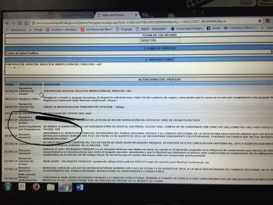 El segundo error del ente acusador, estaría en solicitar la revocatoria del beneficio de la libertad de ‘Popeye’ al despacho del Juez Primero de Ejecución de Penas y Medidas de Seguridad De Tunja, ya que, tal como lo corroboró Caracol Radio, el proceso ya no está en esa ciudad, porque cuando el juzgado de la capital de Boyacá le otorgó la libertad condicional del exjefe de sicarios del cartel de Medellín, ordenó remitir el proceso a los juzgados de Bogotá, tal y como lo ordena el Código Penal Colombiano.