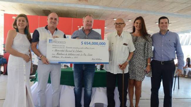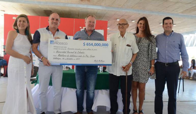 De mano del presidente del grupo empresarial minero Prodeco, el gobernador del Cesar, Francisco Ovale Angarita recibió un cheque por el valor de $654 millones que permitirá la dotación de mobiliario de la Biblioteca de la Universidad Nacional de Colombia, sede la Paz.