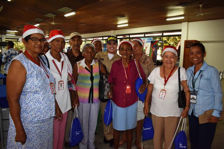 100 adultos mayores compartieron en compañía del señor Contralmirante Francisco Cubides Granados, director de la Escuela Naval de Cadetes, un espacio de alegría y música, amenizado por la banda de músicos de la Escuela Naval, que entonó ritmos típicos del Caribe.