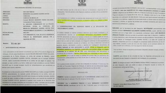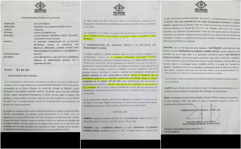 “Coronel Pardo, ¿usted está al servicio de quién, de qué organizaciones criminales. A nombre de qué organizaciones criminales trabaja?”, por esa afirmación hecha el 23 de abril de este año, en medio de una sesión del Concejo de Medellín, el concejal Bernardo Alejandro Guerra será citado en la Procuraduría provisional de Antioquia, por haber incurrido al parecer en injuria y calumnia.