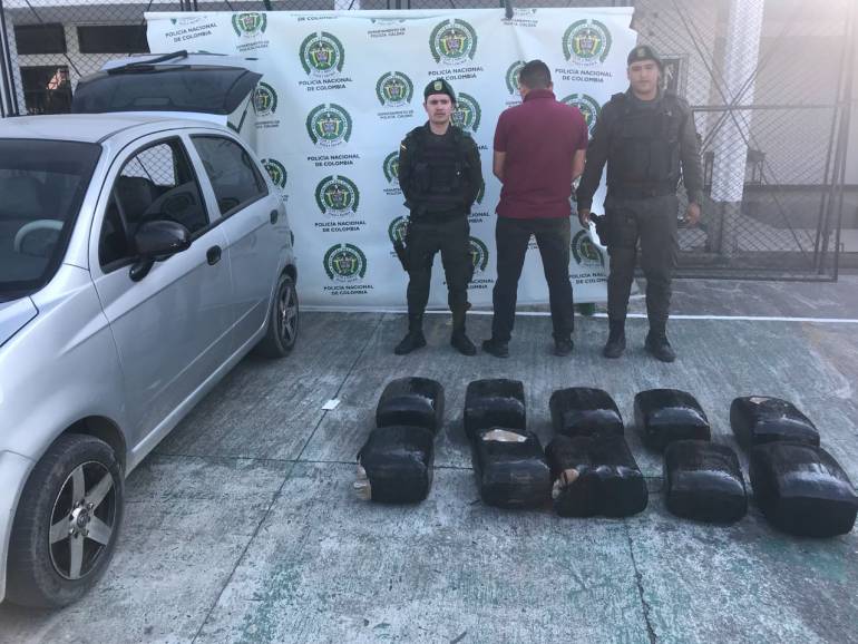 De acuerdo con los informes de la Policía de Caldas, la marihuana estaba empacada en estopas y venían en la silla trasera y el baúl del vehículo. Los uniformados en un puesto de control hicieron parar el automóvil y encontraron el alucinógeno que al parecer iba a ser distribuido en ese municipio caldense.