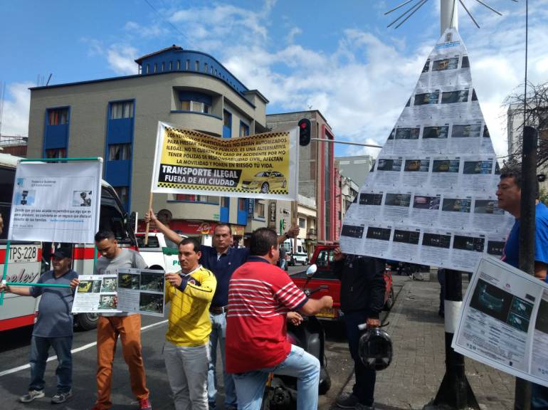 Una decena de taxistas se reunió en la calle del palo con el huevo, para protestar por la inconformidad que tienen con la no señalización de las cámaras de foto multas. Además, pidieron mayor control con las plataformas ilegales como Uber, Cabify y solicitaron que los carriles de solo bus sean de uso compartido.