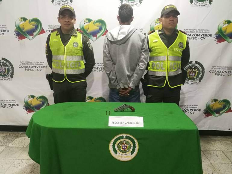 En los operativos de la Policía Metropolitana de Manizales también cayó un joven de 18 años que tenía un revólver de fabricación artesanal y además tenía también un arma corto punzante.