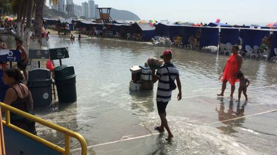 Las olas inundaron parte de la playa del balneario turístico en Santa Marta.