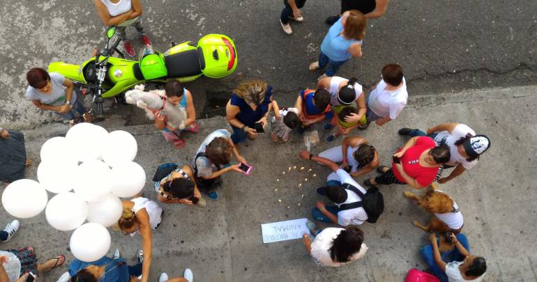 “Si la perrita falleció y él la tiro por el balcón, es porque el adulto mayor había mostrado que no le gustaba los perros, el ladrido, cualquier cosa. De hecho alguno vecinos nos comentan que el señor intento apuñalar la perrita en días anteriores, entonces el plantón es para que la familia responda por la parte justicia y por lo económico por lo que tuvo que vivir la perrita”, afirmó Viviana Marín jurado, una de las voceras de la protesta.