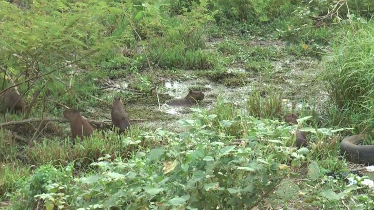 Una manada de chigüiros que apareció en el municipio de Caucasia, en el Bajo Cauca de Antioquia, se ha convertido en los últimos días en el gran atractivo de propios y visitantes.-